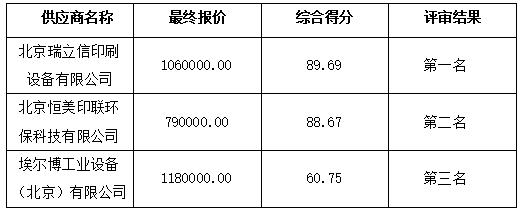 湖南省印刷物資有限責任公司平版印刷機集中供水設備采購中標(成交)結果公告